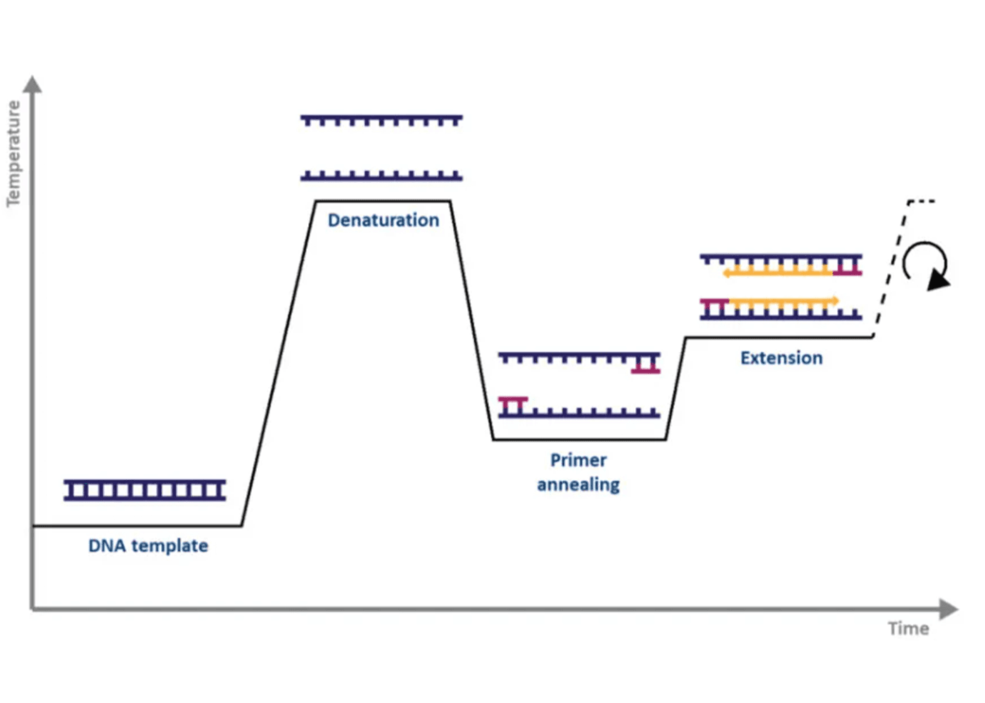 위 그림은 PCR 과정에 대한 스키마입니다. PCR 과정은 온도가 필요한 과정임을 알 수 있습니다. DNA를 복제하기 위해 해당 사이클은 반복되어서 사용될 것이고, 각 과정마다 온도가 변경됩니다. 따라서 데이터 흐름상 측정 후 온도를 상온까지 내려주는 과정이 있을 것이라고 예상할 수 있습니다. 이 경우 데이터가 기기에서 어떻게 보내주고 있는지에 대한 확인이 필요합니다.