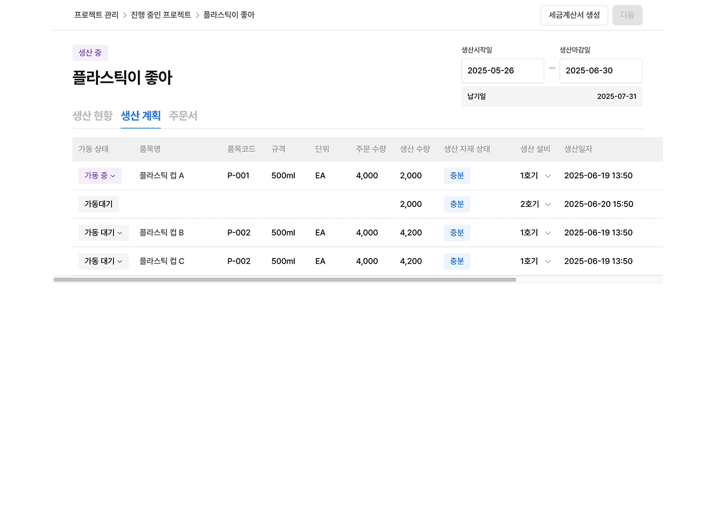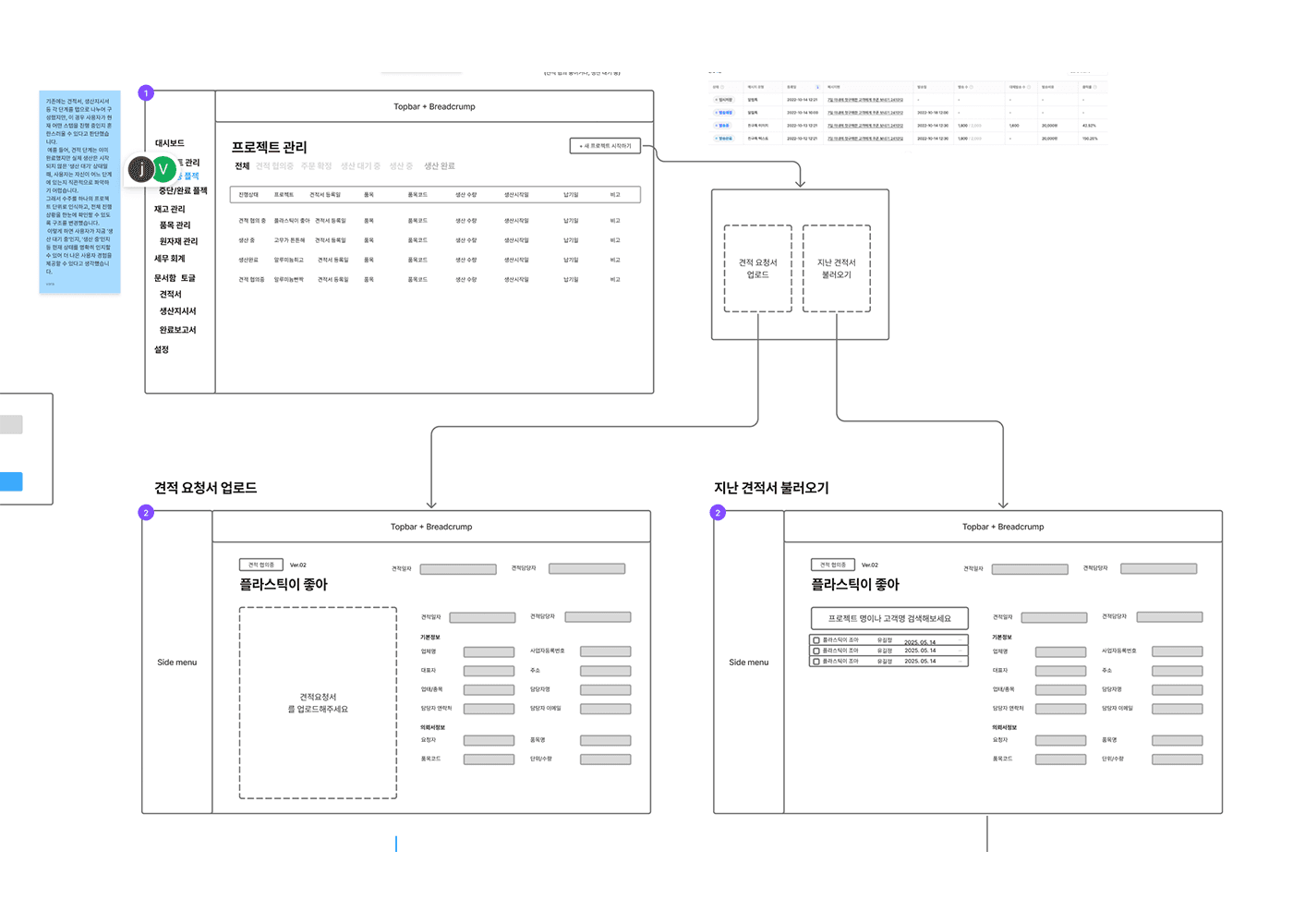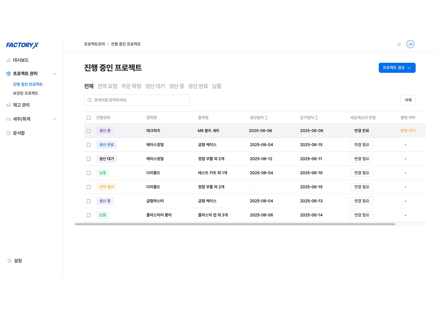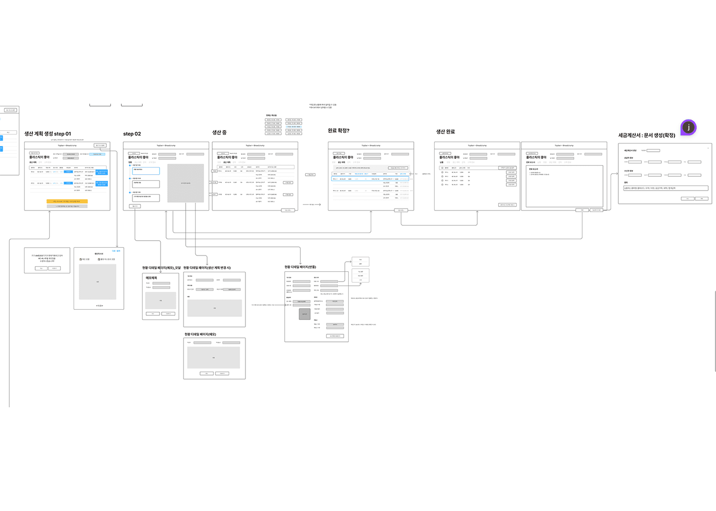 그때 가장 크게 느낀 건, 프로젝트의 성패는 결국 기획이 얼마나 단단히 잡혀 있느냐에 달려 있다는 거였어요. 팩토리엑스는 ‘견적/주문 → 생산 → 납품 → 프로젝트 완료’로 이어지는 긴 프로세스를 담아야 하는 서비스였는데, 이 흐름을 처음부터 고려하지 않으면 화면 연결이 어색하고 사용자 경험도 매끄럽지 않을 수밖에 없었죠.