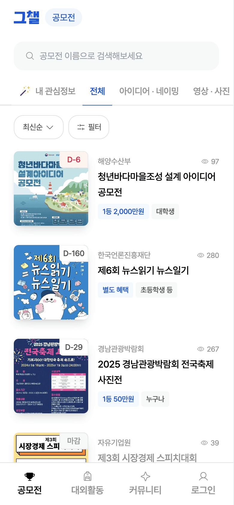 Development '세상에서 가장 편한 공모전, 대외활동 찾기'라는 모토에 맞게 모바일과 데스크탑의 반응형 디자인을 자연스럽게 구현하는 데 신경을 많이 썼습니다. 특히, 사용자들이 모바일 환경에서 편하게 공고를 확인하고, 게시글을 올릴 수 있도록 next-pwa 패키지를 통해 PWA(Progressive Web App)기능을 구현하여 어플처럼 다운 받아 사용하는 경험을 제공했습니다.
