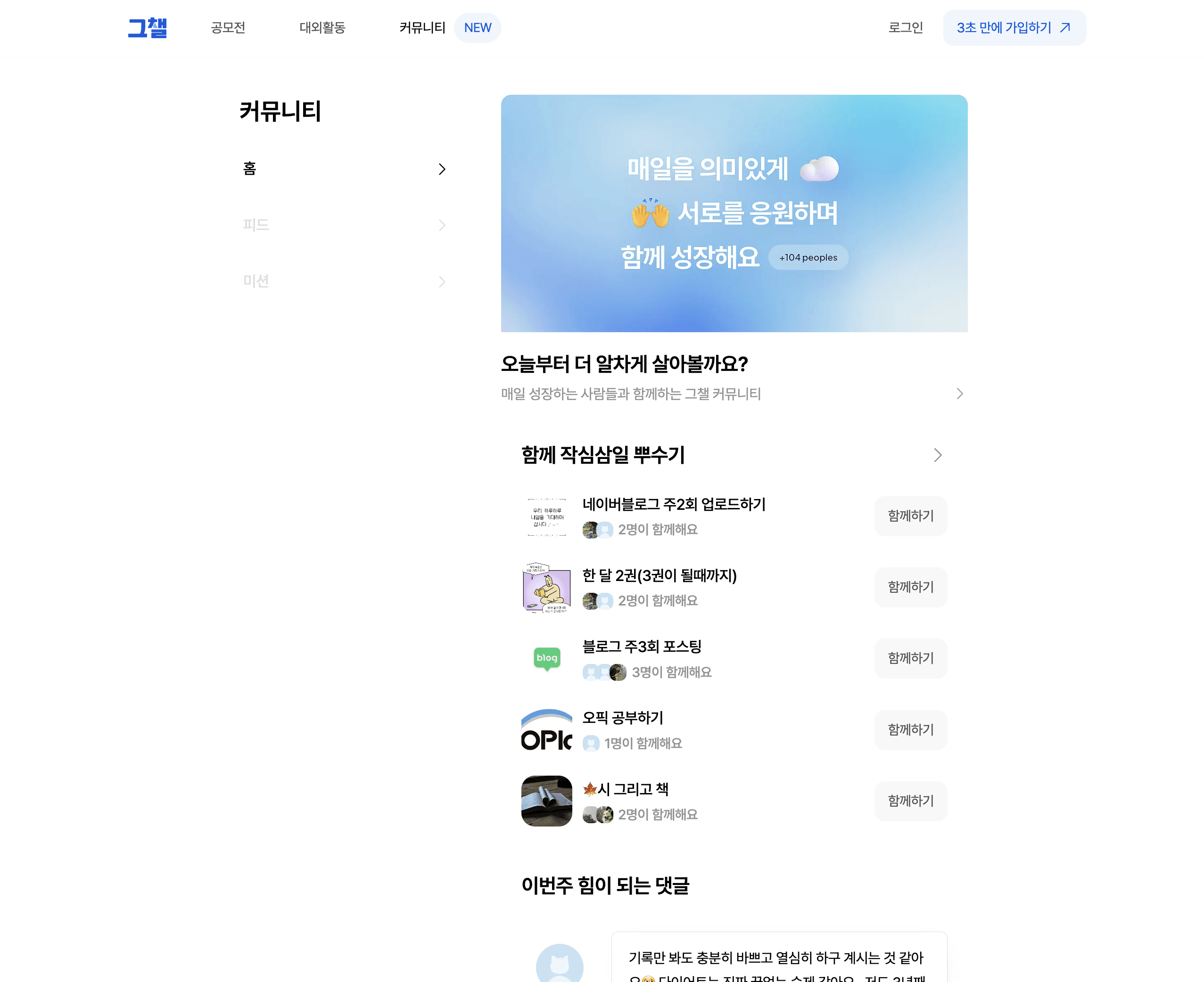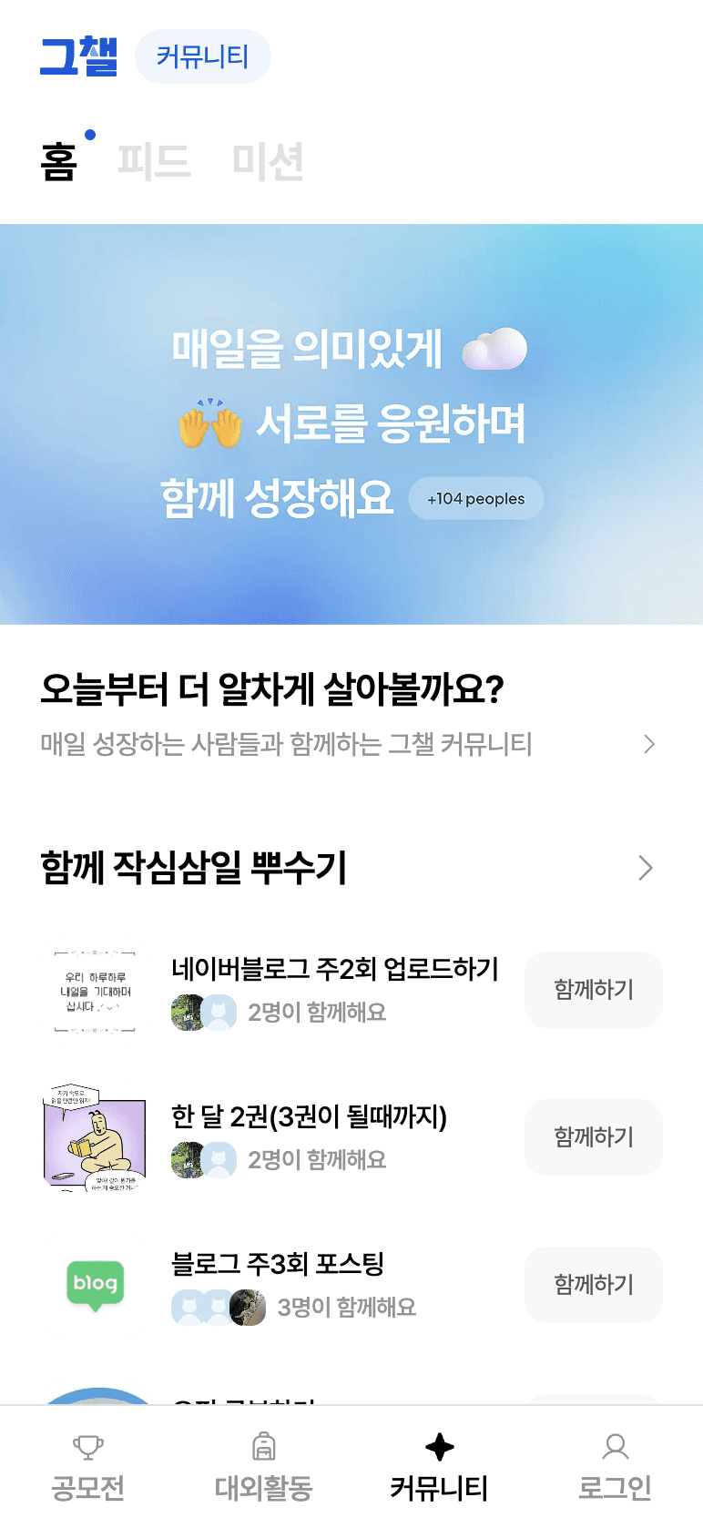 한 달만에 미션 커뮤니티를 개발하고, 참여자 약 120명을 모아 챌린지를 오픈했어요. 오픈 첫째 날부터 공모전 도전, 다이어트, 건강식, 강아지 산책, 영단어 암기 등 다양한 목표를 향한 재미있는 미션 그룹을 만들어졌고, 유저들은 서로를 응원하고, 성과를 공유하며 활발하게 커뮤니티를 이용해주었어요.