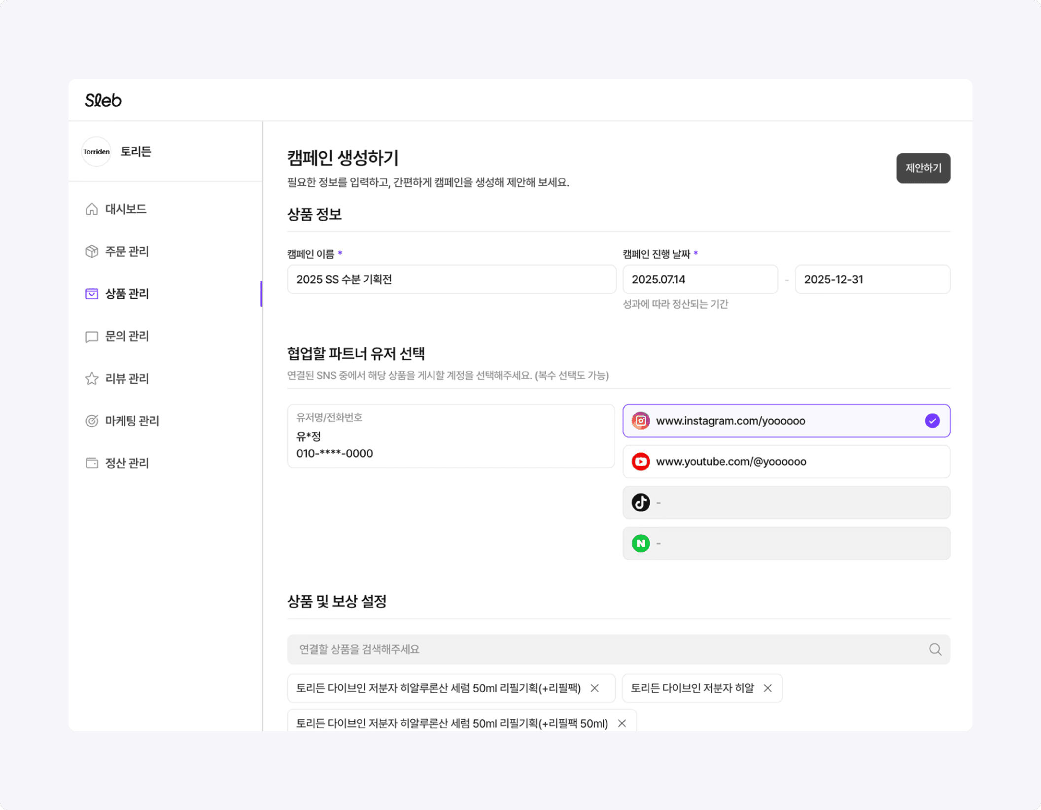 SLEB은 브랜드와 소비자를 연결하는 뷰티 플랫폼이에요. 막 시작한 브랜드부터 성장 단계에 있는 브랜드까지, 누구나 쉽게 입점해 상품을 선보이고 협업을 통해 기회를 넓혀갈 수 있어요. 또 상품 관리, 마케팅, 리뷰, 정산까지 이어지는 엔드투엔드(End-to-End) 사이클을 제공해 브랜드가 효율적으로 성장할 수 있도록 해줘요.