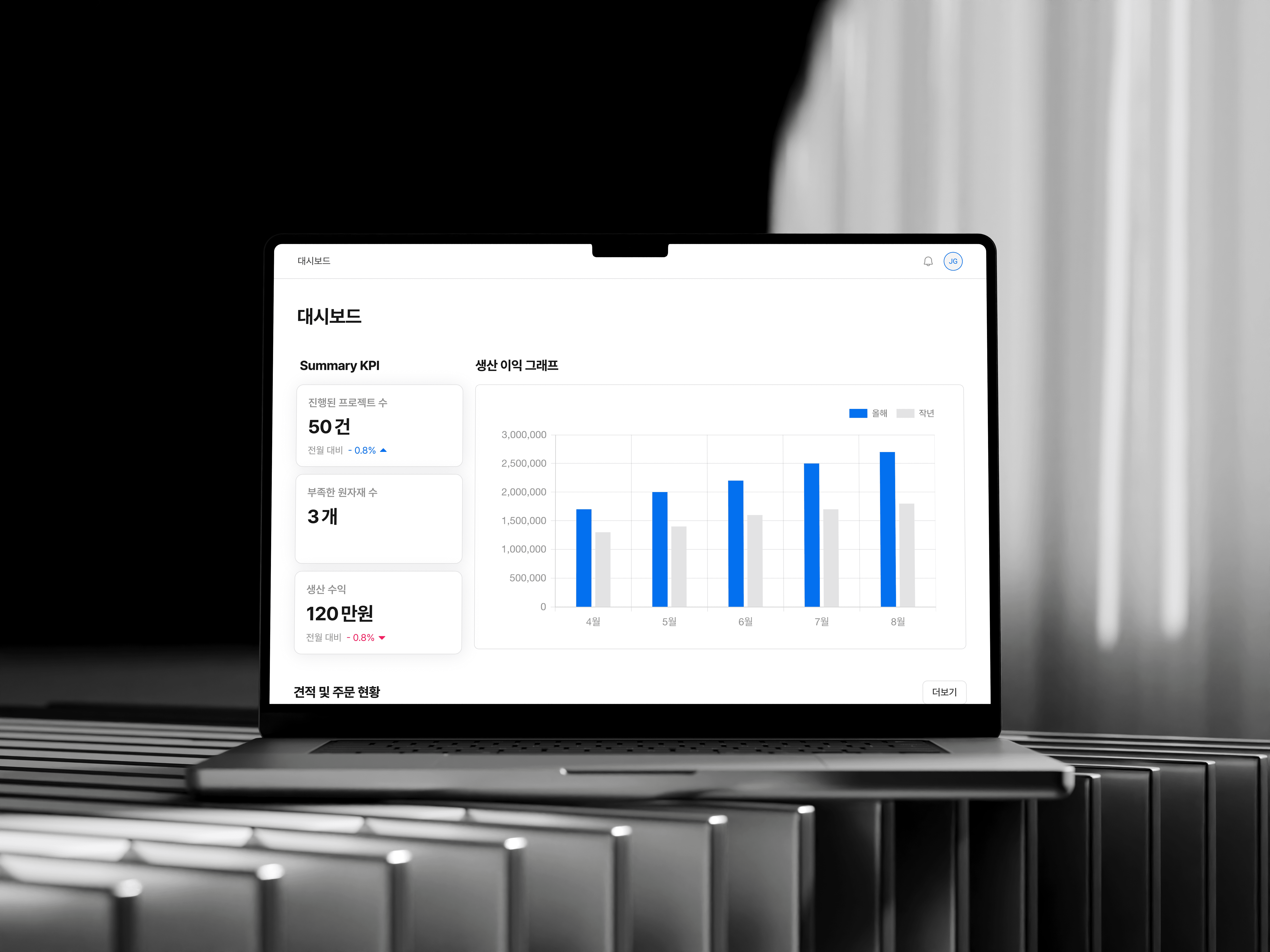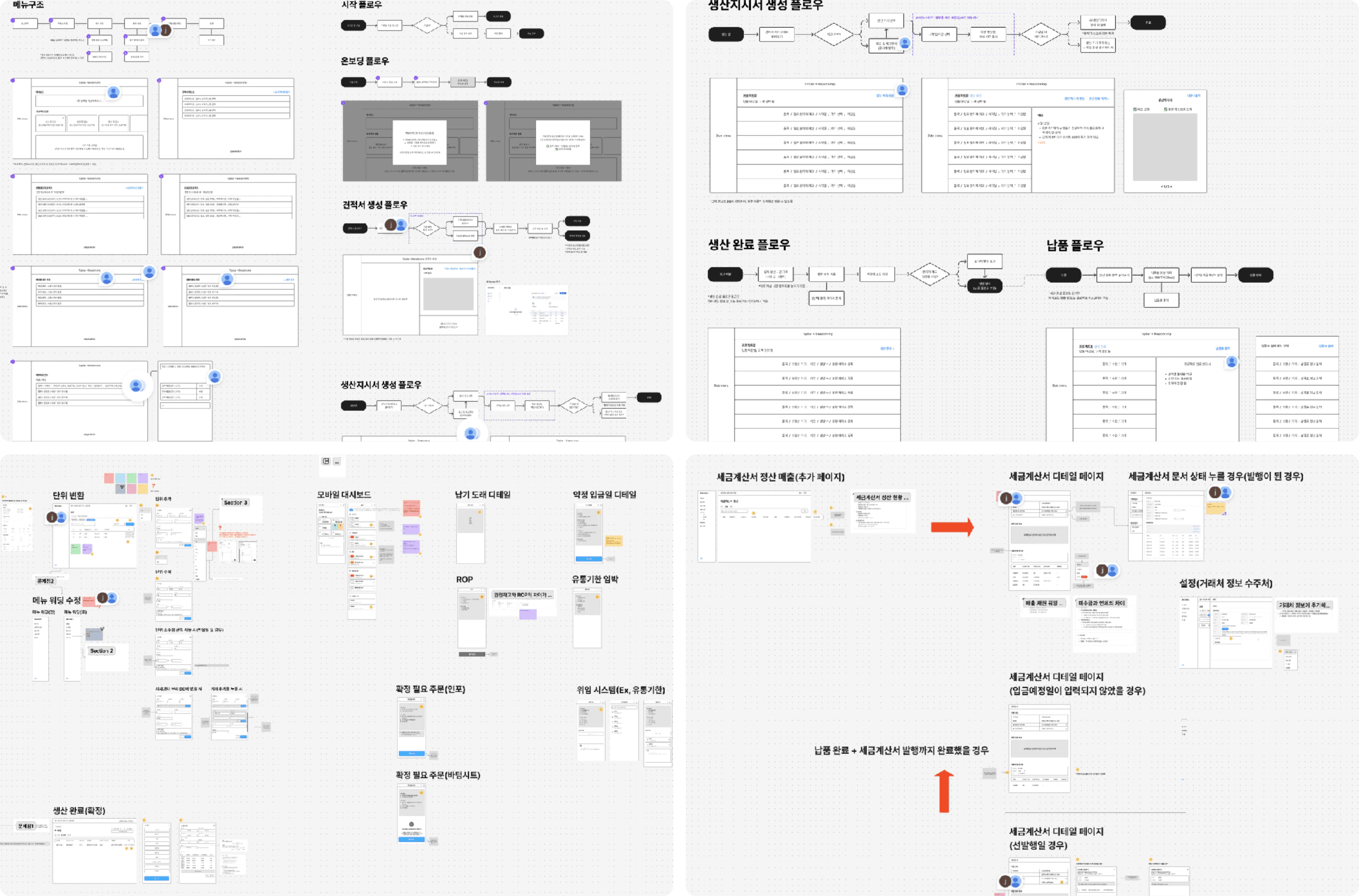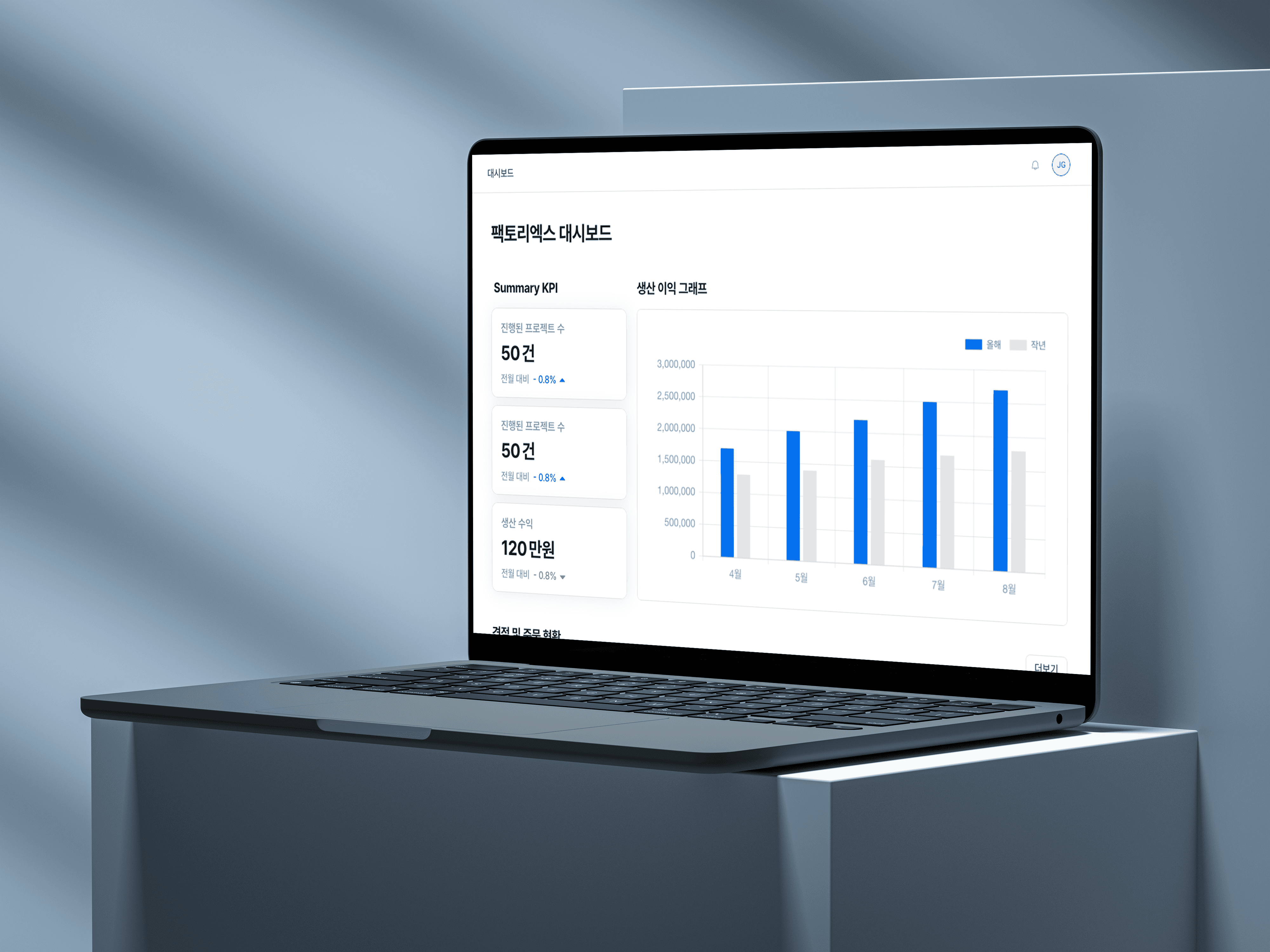 Design 프로젝트 초기에는 실제 공장 관리자와 담당자를 인터뷰하며 현장의 업무 흐름을 분석해왔고, 지금도 사용자 언어를 중심으로 표현을 지속적으로 개선하고 있어요. 이를 바탕으로 생산–재고–세무 데이터가 하나의 대시보드에서 유기적으로 이어지도록 IA와 화면 구조를 설계하고, 현장 친화적인 마이크로카피와 UX Writing을 진행하고 있답니다.